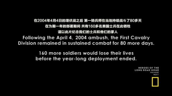 然而,十几年来有关这场伏击战的影视作品却并不多见。2017年由美国国家地理频道播出的8集迷你剧《漫长归途》(又译《归乡路漫漫》,The Long Road Home),则是近年来最为完整体现萨德尔城伏击战的电视剧作品。
