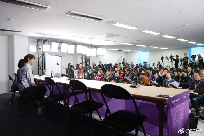 羽生结弦也曾为了不影响他人采访画面而谨慎移动: