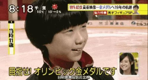 11岁接受采访时,留着偶像、俄罗斯“冰上皇帝”普鲁申科同款发型的羽生,略微羞涩又带着笃定地说出了自己的目标:“我的目标是拿到奥运会金牌”。