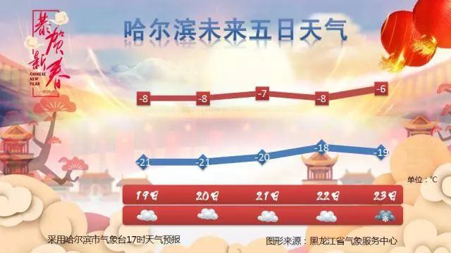 19-21日哈尔滨以晴或多云天气为主,气温有小幅的回升,波动较小,最高气温在-6~-8℃左右,最低气温在-20℃左右,早晚气温依然较低,请注意防寒保暖。