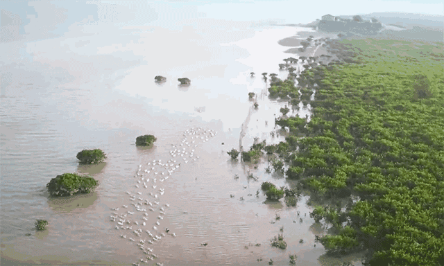 在广西有一片被誉为“海上森林”的红树林,那里光热充足,水质纯净滩涂淤泥肥沃,生活着多种海洋生物。