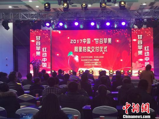 资料图:2017年11月11日,甘肃省大宗农产品网络拍卖在甘谷县举办。在为期9天的拍卖会上,成交苹果148.6吨,成交金额95万元。 王佳伟 摄