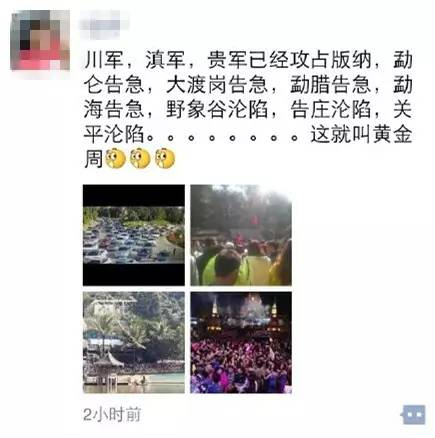 川军,滇军,贵军已经攻占版纳,勐仑告急,勐海告急,野象谷沦陷,告庄沦陷!宾馆不是爆满就是天价!!!没有一个小时根本出不了城!!!