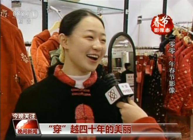 售货员介绍,今年春节,中式服装的销路非常好,几百元一件的衣服,一天销售额就能有一万多件。如今的中式服装在面料上做了很大的改进,比如收腰,突出修身效果,袖子也是分开剪裁,避免臃肿。棉衣上的扣子也盘得越来越小巧秀美。
