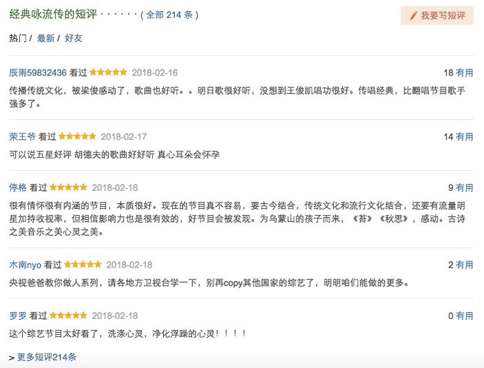 央视爸爸是这样给它定位的:首档、原创、大型、诗词文化音乐类节目。最大的特点是用“和诗以歌”的形式,让传统经典诗词与新时代流行元素相结合。