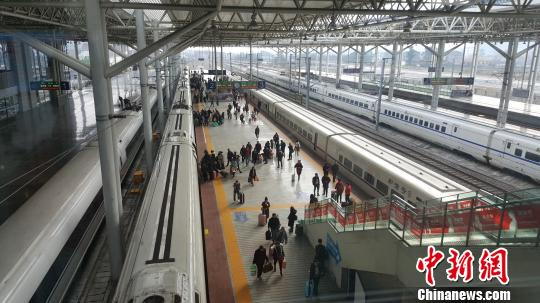 春运期间,温州南站内旅客上车 潘沁文 摄