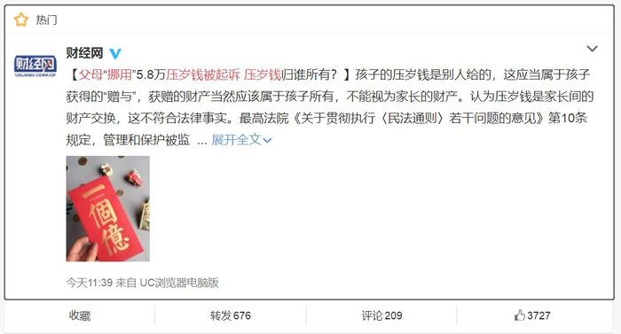 湖南压岁钱平均800?!有人因它被挪用将父母告上法庭,这钱到底该归谁?