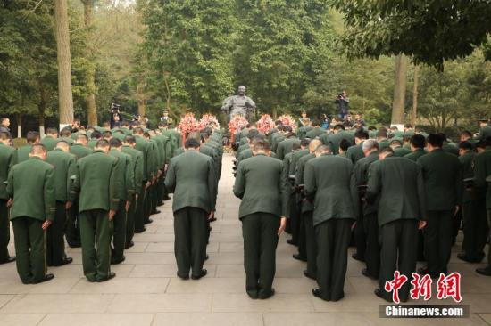资料图 向邓小平铜像献花、深情鞠躬,以表缅怀、哀思之情。王爵 摄