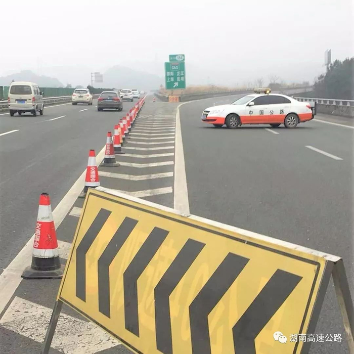 △2月19下午,怀化管理处芷江路政中队、怀化西桥隧所配合高速交警,在G60沪昆高速竹田枢纽互通进行间断性交通管制。