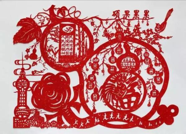 剪纸是中国民间传统的镂空艺术,又称刻纸,以雕、镂、剔、刻、剪的技法为长,是中国农村广为流传、最富群众基础的民间艺术形式之一,剪纸的载体包括纸张、金银箔、皮革、绢帛甚至树皮,作为一种造型艺术,剪出的图案样式丰富多样,风格明快朴实。