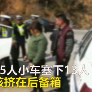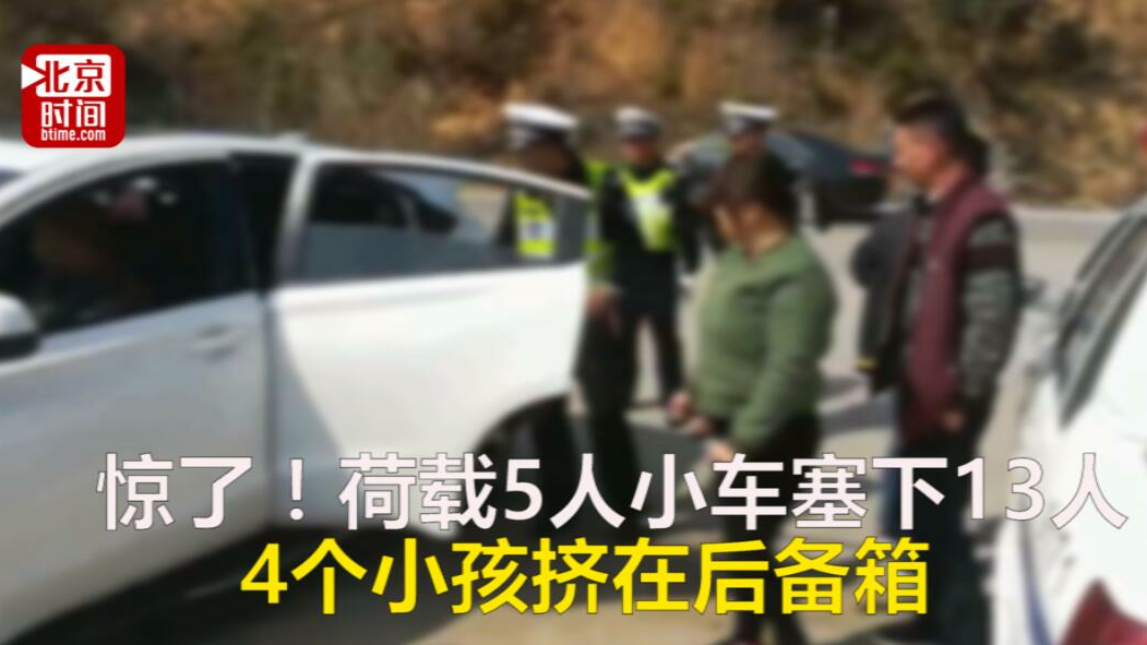 一家13口挤进五座车被查 4个孩子塞后备箱(视频)