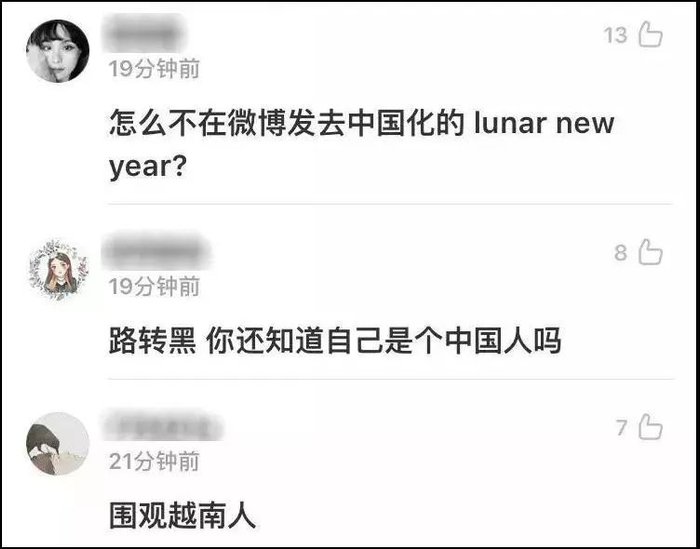 那么,为何刘雯此举会在社交网站平台引起如此强烈的批评之声呢?问题就出在Lunar New year这个英文词上。