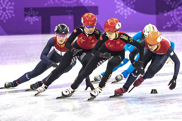 2018平昌冬奥会短道速滑女子3000米接力预赛上中国队破奥运会纪录晋级。 视觉中国 图