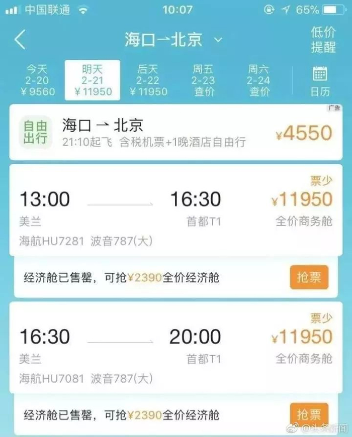 然而,从海南离开的机票真的是一夜之间暴涨数倍吗?事实并非如此。
