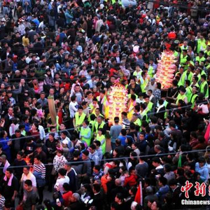 中新社福州2月21日电 (闫旭)这个春节假期期间,约30名台商台胞与福州民俗表演者所组成的榕台民俗踩街队伍,以巡游表演的方式,在台江区南公园、鼓楼区三坊七巷、仓山区上渡闽王庙等地,为市民、游客带来充满吉祥年味的新春民俗文化盛宴。