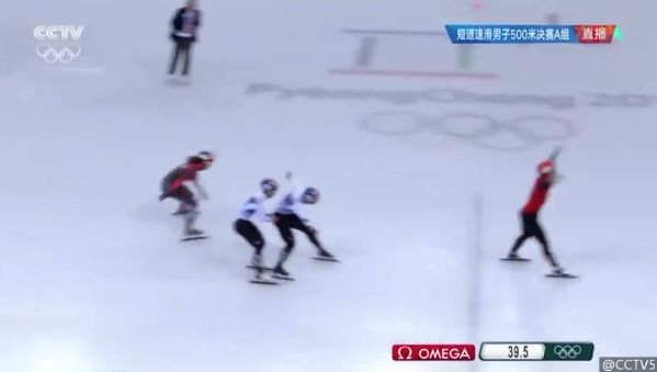 半决赛第一组,比赛中出现了插曲,由于冰面上出现刀片,武大靖多滑了两圈半被召回,最后武大靖以40.087秒获得小组第一进入A组决赛!