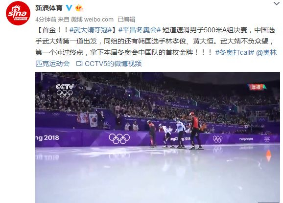 平昌冬奥会短道速滑男子500米决赛,中国选手武大靖以39秒584的成绩,将自己在1/4决赛创造的世界纪录再次打破,拿到本届冬奥会中国代表团的首金以及中国男子短道历史上的首金。韩国两位选手黄大宪与林孝俊,分别以39秒854和39秒919的成绩获得亚军和季军。