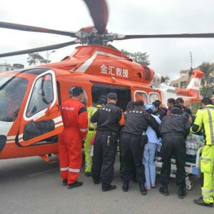 江西省赣州市2月20日发生一起客车侧翻事故,2月21日,江西民间公益组织联系该省某公司的空中救援队,用直升机协助转移重症伤员。李斌 摄
