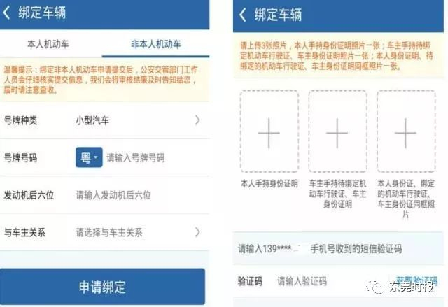 1、只允许申请绑定本人名下车辆和1辆非本人名下机动车;绑定的必须是个人名下机动车,且必须是小型汽车或小型新能源汽车。