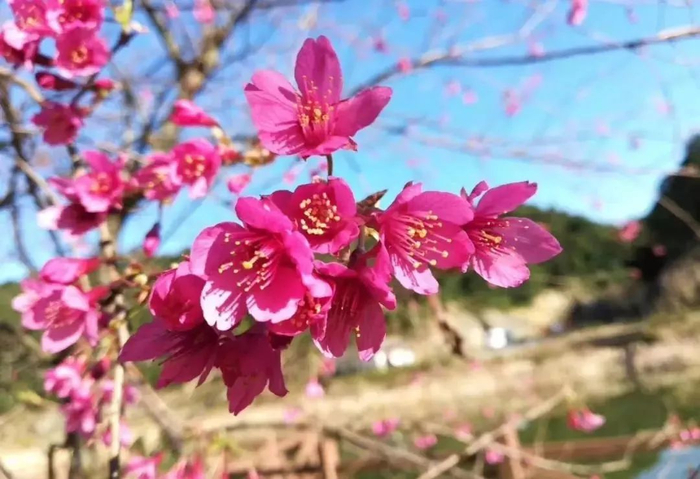横坑村种植了足足9000株的绯寒樱,有深红、粉红和白色三种花色,被称为“旺地樱花”。眼下正是樱花盛放的季节,花开灿烂!