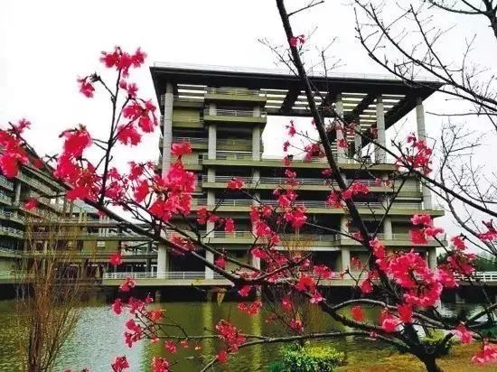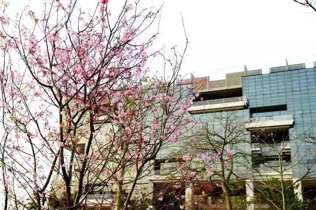 广工图书馆旁边的樱花岛,种有150多株樱花,品种主要是寒绯樱,形状似钟,花色桃红,花瓣细小。总说广工男生多,缺少如花般的美意,小布就不认同。你看那满树烂漫,如云似霞的樱花林,是何等的美意。