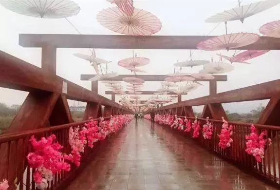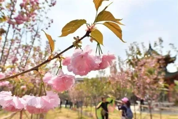 园内有6000棵樱花,近10个品种,粉红、莹白、双色……甚至还有会玩“变脸”的——初开时粉红,最盛时转白,颇为考人眼光。樱林旁还筑起了一道樱舞长廊,走在长廊里,就可以和樱花亲密零距离接触。