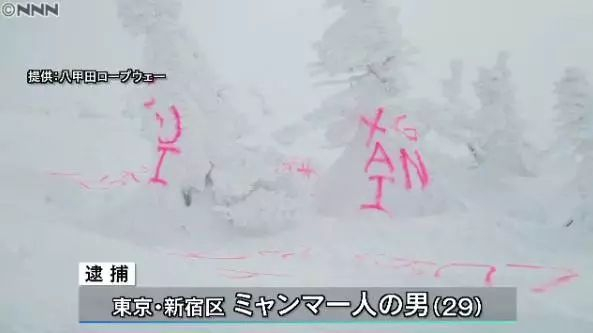 日本警方通过目击情报进行了搜查,发现一名在东京新宿区居住的缅甸男子(29岁)有较大嫌疑。因使用荧光喷漆涂鸦的行为妨碍了索道公司的业务,22日,日本警方以“威力业务妨害罪”逮捕了这名缅甸男子。
