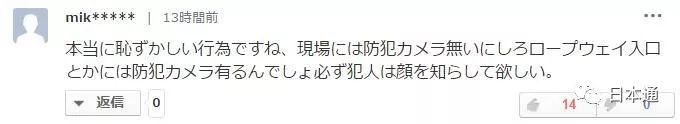 网友5:真是可耻的行为啊。就算现场没有监控摄像头,在缆车入口这些地方总有摄像头吧,真想看看犯人长什么样。