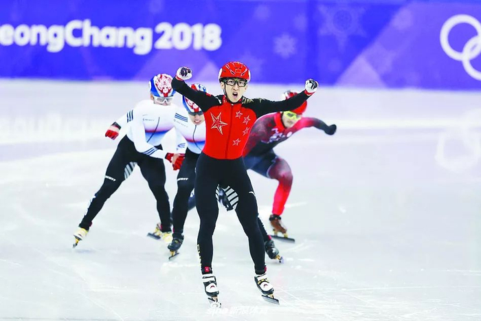 在第一个冲过终点后,武大靖握紧双拳大声怒吼,宣泄着本届冬奥会至今的愤懑。随后他和场边的教练短暂庆祝后,从场边拿下一面五星红旗,直接披在身上开始在冰面上庆祝。要知道此时裁判还在通过录像回放观看是否有犯规动作存在,最终的结果其实还没有出炉。但是武大靖丝毫没有理会这些,因为在整个滑行过程中,武大靖根本没有给身后的韩国两位选手任何碰到自己的机会。