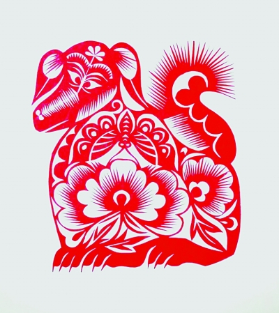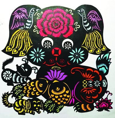 民间有不少以狗为题材的剪纸作品。这些作品传承了中国民间剪纸技艺,结合现代审美意识,运用简括、夸张、拼合、透叠、套嵌、添加、装饰、拟人、象征、谐音等造型方法和表现手法,塑造了丰富的意象,表达对狗的赞颂和对人事兴旺的美好愿望,体现了深邃的文化内涵。可以说,其中有不少是现代民间剪纸传承创新的精品力作。