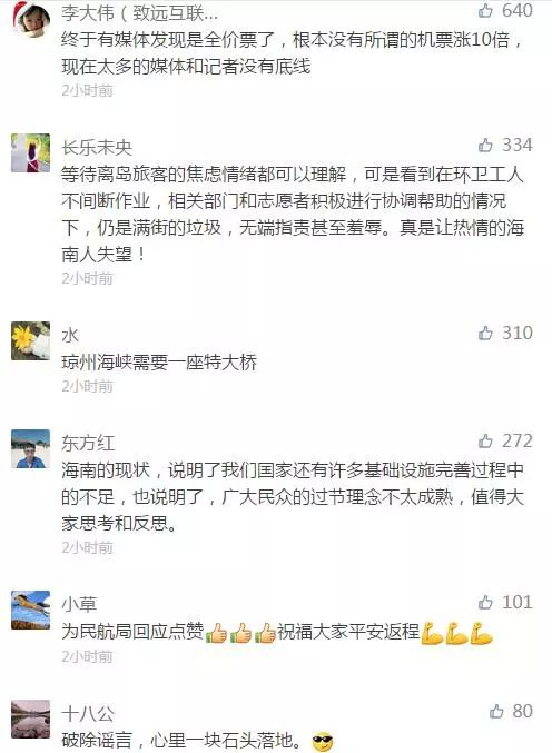 水路被堵,导致机票也出现了“一票难求”的现象。海南离岛机票从大年初二起不断上涨,由三亚飞往全国各地的机票价格均破万,有些甚至接近2万,票价涨幅超过400%,但仍一票难求。而从三亚、海口到昆明的机票最贵的卖到2万多元(商务舱或头等舱的全价)。而有经济舱的航班,基本都要等到3月1日才能买到机票。