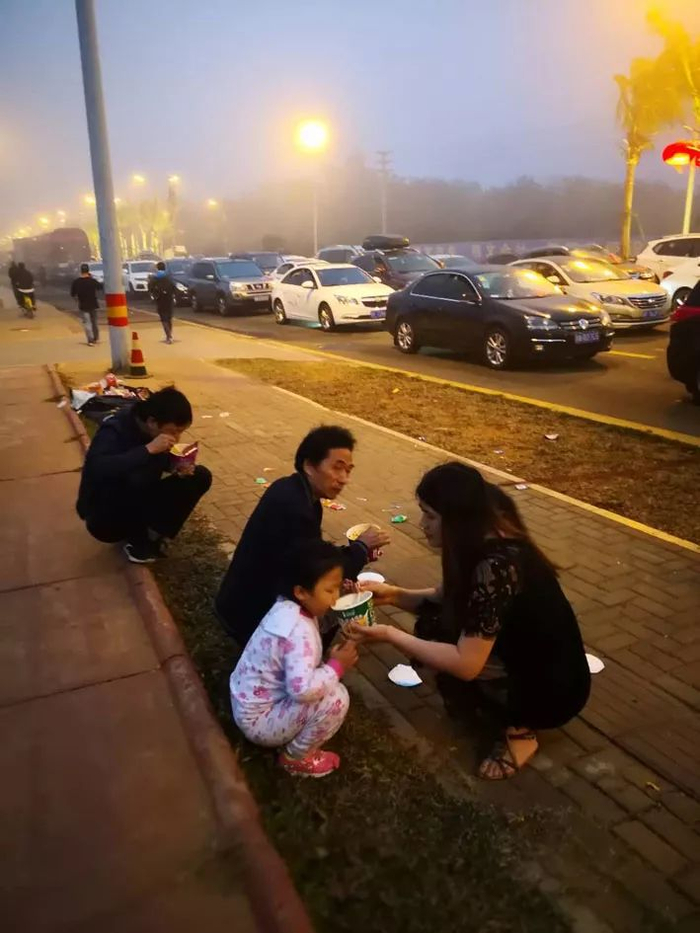 堵在路上的游客泡面充饥 刘普礼 刘斌 刘恒昀 供图