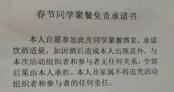 春节期间少不了同学聚会,每到此时喝酒问题就会被人们讨论。近来开始出现所谓的“喝酒免责承诺书”,被网友戏称为“生死状”。签这个就能免责?