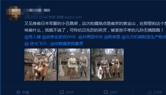 2月20日(大年初五),微博上曝出几张照片,照片上几名年轻人身穿日军军服在南京紫金山一处碉堡前拍照,其中一个人站在碉堡上耀武扬威。照片一经发出,引来了广大网友的强烈抗议。提起南京,我们首先想到的就是八十年前的南京大屠杀,而南京紫金山则是当年南京保卫战的主要战场,身穿日军军服拍照的几位年轻人背后的碉堡,正是当年中国军队重要的防御工事,而这座碉堡又见证过怎样的历史呢?