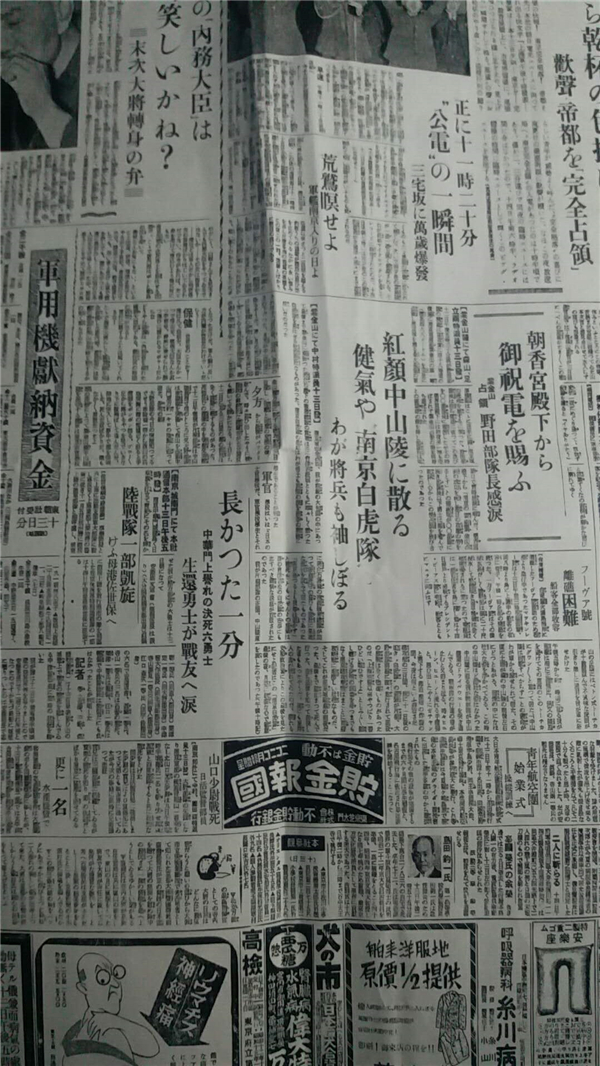 在我军精锐对南京实施大包围作战及完全占领南京的战斗中,在紫金山顽强抵抗到最后的蒋介石麾下的教导总队,其悲壮的奋战令人不禁想起与津若松城一起逝去的白虎队那悲壮的场面。南京白虎队的临终场面也令我勇士在其战斗过的地方黯然泪下。