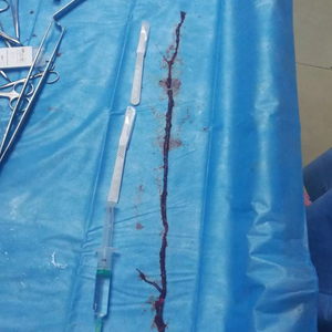 病人基础疾病比较多,手术出现了很多的难点,我们把这个难点都解决了,手术做得很漂亮也很成功,成功的把长54米的血栓取出来了。