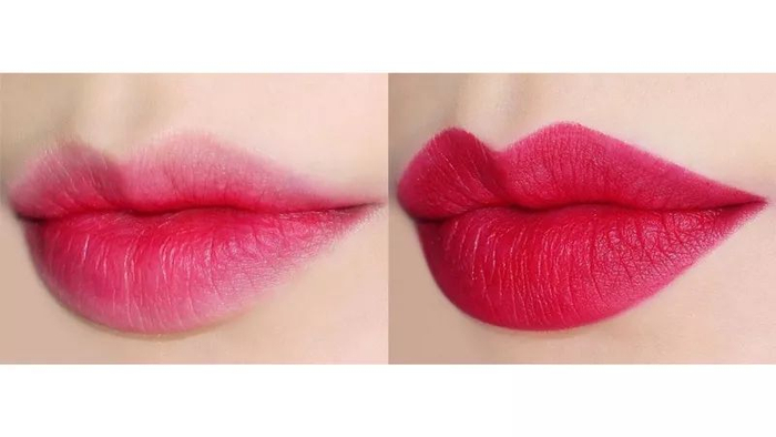 薄涂是清新可爱的玫红色,非常适合画这种“咬唇”的妆感,显白不用说,还显得格外年轻俏皮,看了就想亲一口。