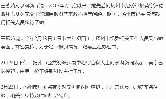 对此,江苏省扬州市纪委监察委对澎湃新闻回应称,