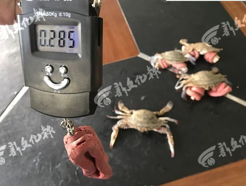 称重:粗胶皮绳比蟹还重 细胶皮绳略轻于蟹重
