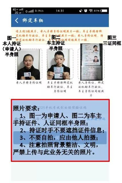 注意带上本人自己的身份证及机动车驾驶证原件及复印件,绑定车辆所有人的身份证及机动车行驶证原件及复印件。