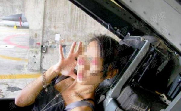 台湾辣妹被男友带进F16军机嘟嘴拍照 台军脸气绿!