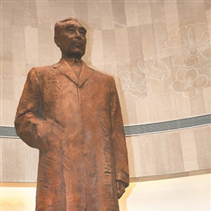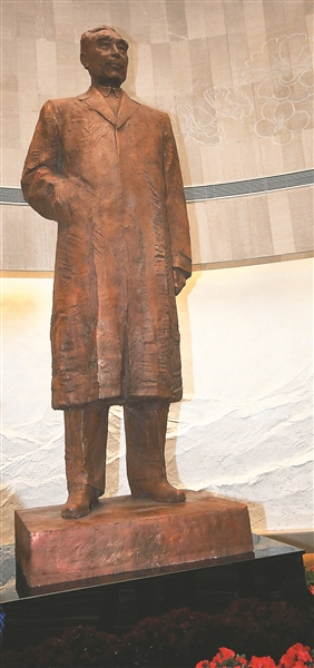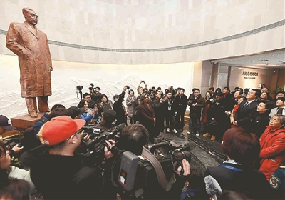 参观基本陈列展的观众瞻仰耸立在纪念馆序厅的周恩来铜像。曹 政摄