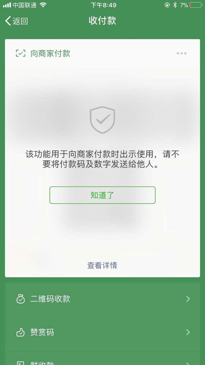 “微信付款码截图被不法分子盗刷”
