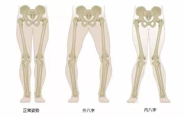 如果迈着外八字脚步,说明脚趾向外的角度过大,时间久了,会让膝盖外移,双腿变形。
