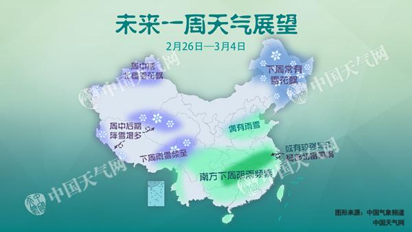 28日南方降水缩减,但3月初黄淮及其以南地区的降水又会再度增多。总的来看,未来一周南方雨水频繁,阳光十分稀缺,江淮、江汉、江南一带需关注中到大雨天气对交通出行的影响。同时,28日到3月初东北一带降雪也比较频繁,公众请注意关注路况信息,注意交通安全。