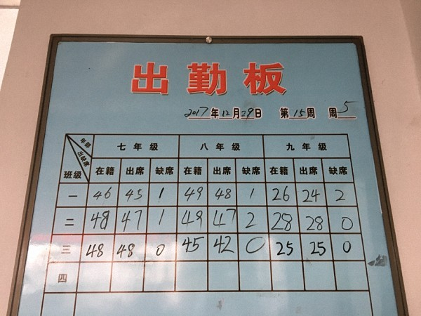 初中部的出勤板