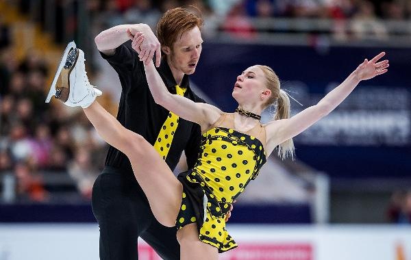 俄罗斯双人滑组合Evgenia Tarasova和Vladimir Morozov(左)选择了Christina Aguilera的《Candyman》作为长节目背景音乐。
