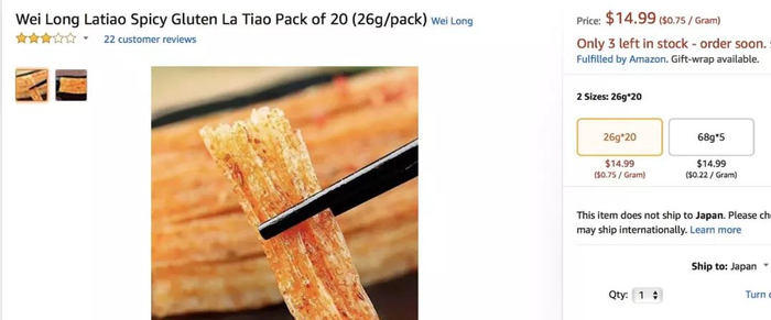 来自中国,常年雄踞中小学生小卖部销量冠军的辣条,也凭借自己的迷之口感和魅力,征服了部分外国人,国内一块钱一包的辣条,在国外的价格也不低。