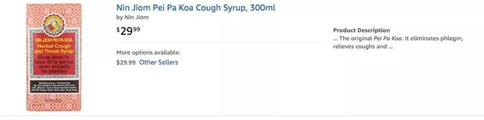 之前在美国卖10来刀的枇杷膏价格直接翻了几倍,在网上是30来刀,而在很多中国超市里,甚至一度狂飙到70刀(大概450人民币),但仍旧卖到脱销。