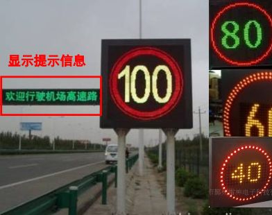 除利用太阳能LED可变信息板实时显示限速信息外,还可单独设置可变限速标志实时显示当前路段限速值。